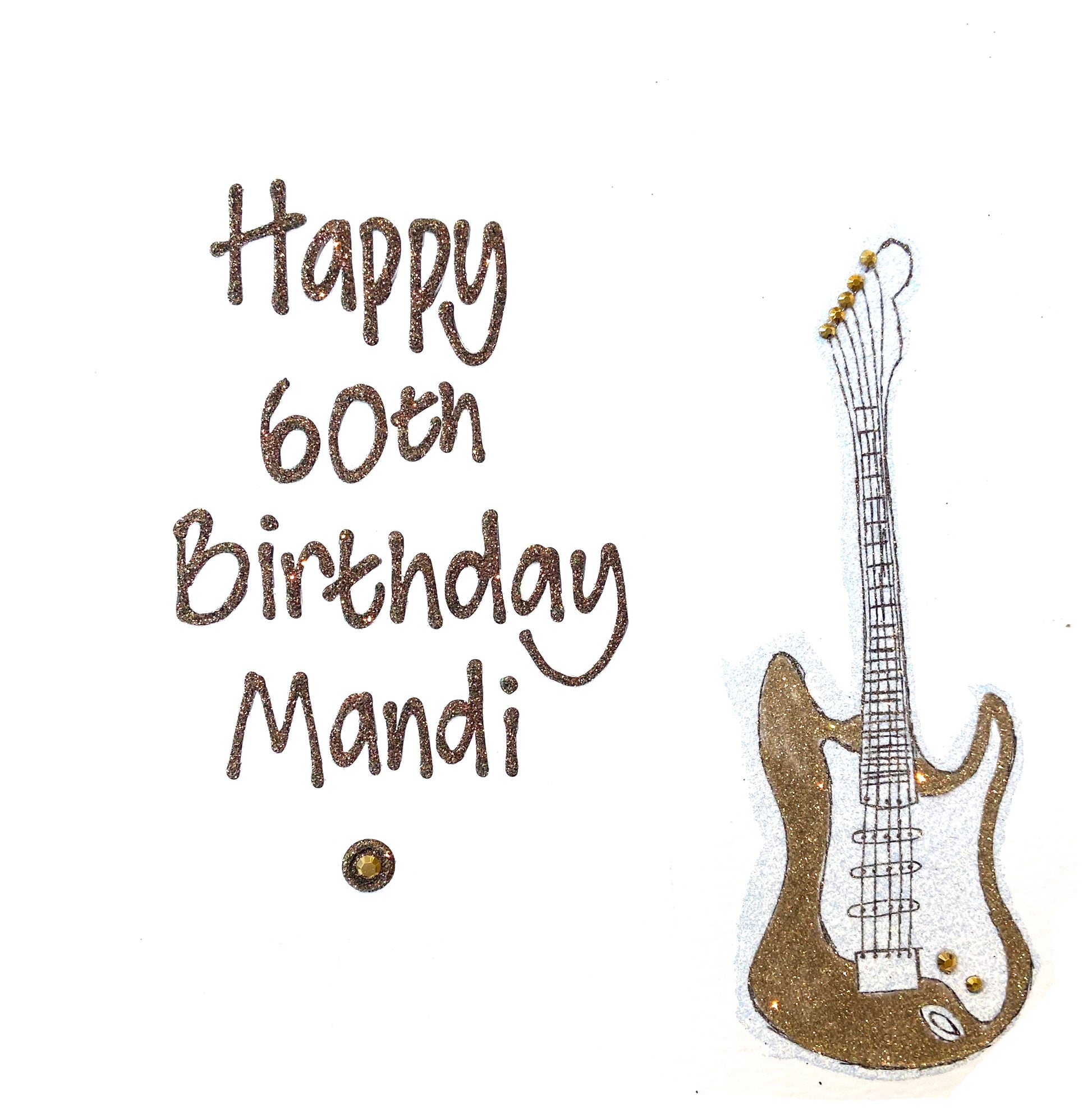All of our personalised cards are handmade in our Leigh-on-sea shop in Essex using high quality board that's made in the UK. We use a variety of glitters, crystals and 3D text to customise each card.