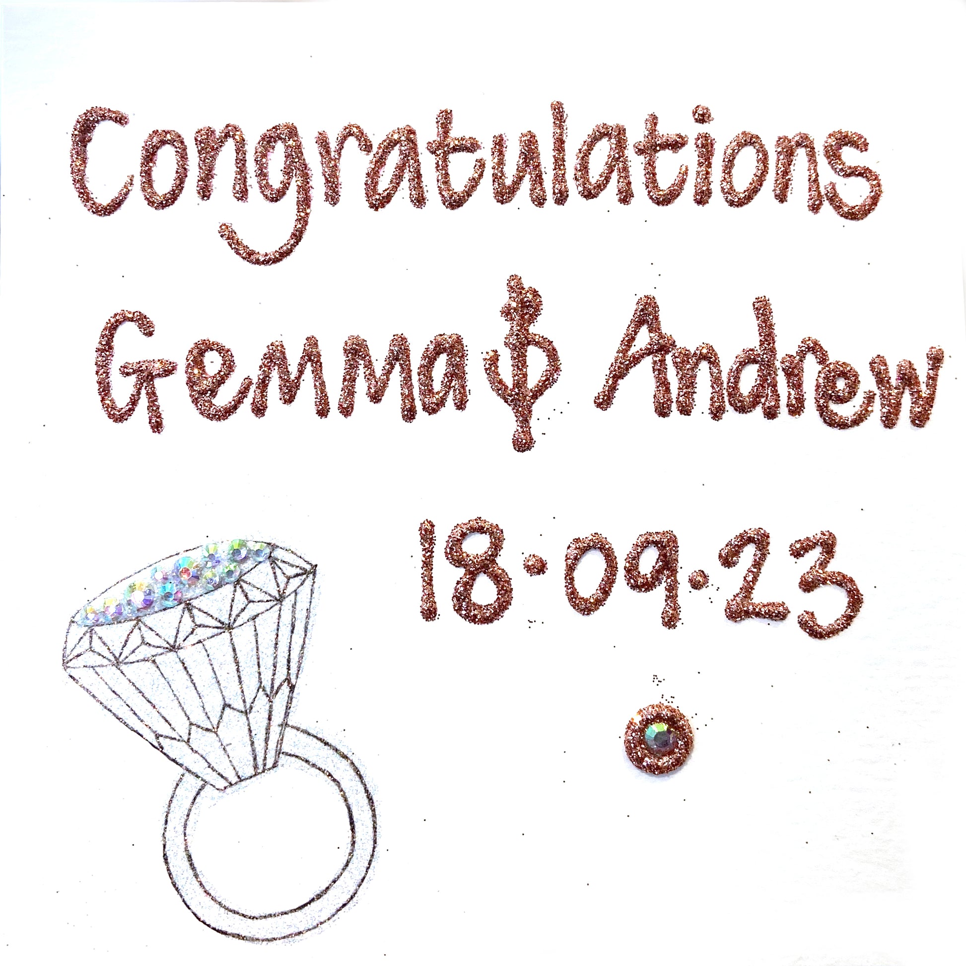 All of our personalised cards are handmade in our Leigh-on-sea shop in Essex using high quality board that's made in the UK. We use a variety of glitters, crystals and 3D text to customise each card.