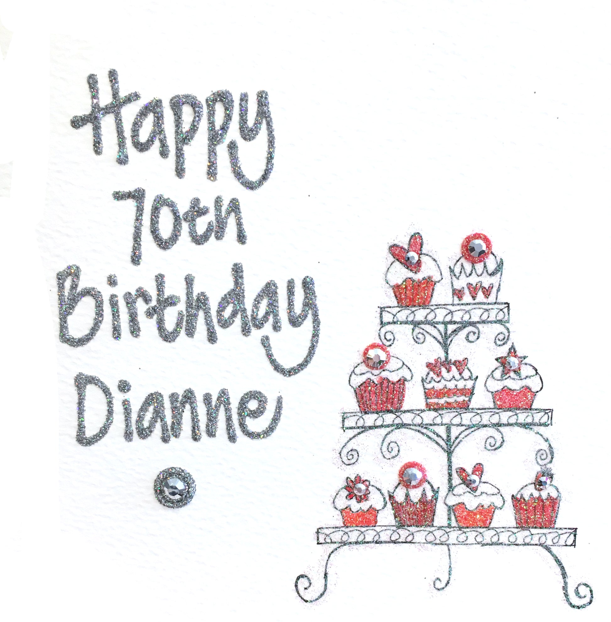 All of our personalised cards are handmade in our Leigh-on-sea shop in Essex using high quality board that's made in the UK. We use a variety of glitters, crystals and 3D text to customise each card.